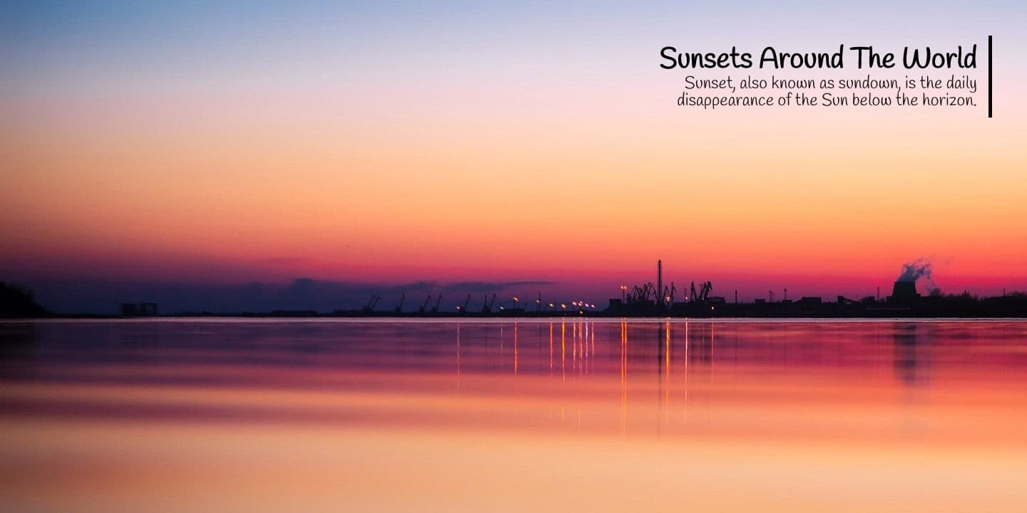 Sunset, also known as sundown, is the daily disappearance of the Sun below the horizon.Sunsets Around The World